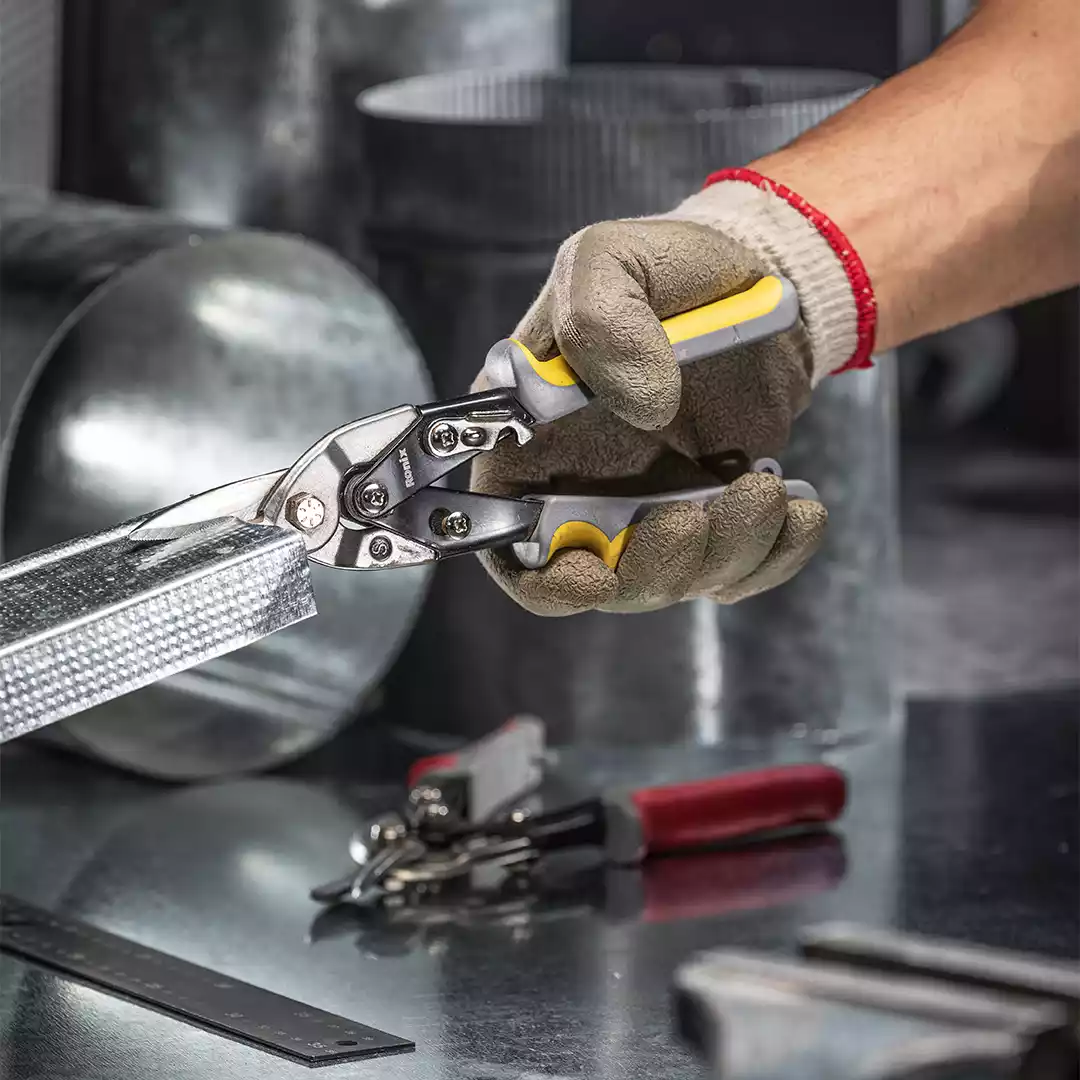 A tesoura de aviação Ronix RH-3904 é uma ferramenta manual de alto desempenho, ideal para cortes retos em chapas metálicas finas. Com lâminas serrilhadas em liga de cromo-vanádio forjadas e endurecidas, ela oferece excelente durabilidade e precisão ao cortar aço laminado a frio de até 1,2 mm e aço inoxidável de até 0,7 mm. Seu cabo ergonômico em borracha termoplástica (TPR) proporciona conforto e segurança durante o uso, mesmo em tarefas prolongadas. O design inclui mola absorvedora para ação rápida e precisa, além de trava de fácil acesso que permite operação com uma só mão. A alavanca reforçada facilita o corte com menos esforço, tornando essa tesoura ideal para profissionais da construção civil, manutenção industrial e projetos de metalurgia. Compacta, leve e funcional, a RH-3904 é uma excelente escolha para quem busca qualidade e praticidade no corte de metais.
